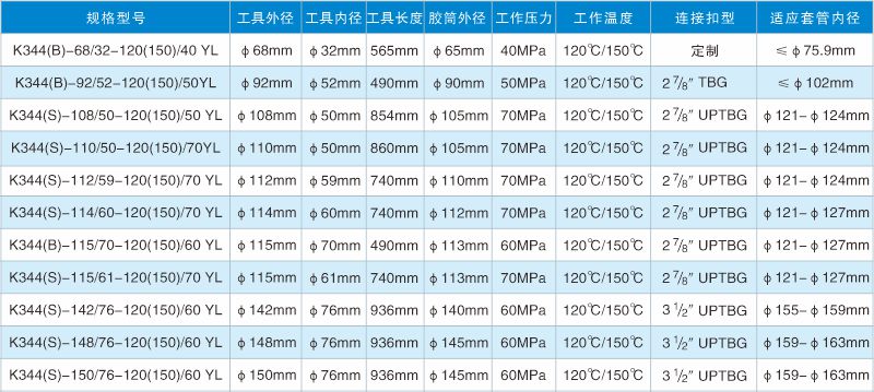 * 注:非以上型號封隔器,我公司可進(jìn)行另行開發(fā)。所有工具連接扣型為出廠預(yù)制,如需特殊扣型,可另行加工定制。